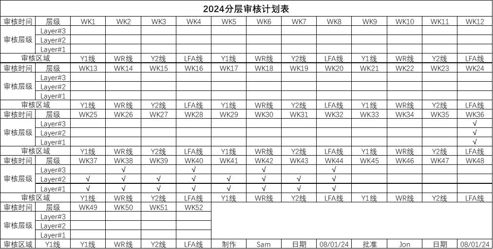 Во -первых, учитывая длительность инициативы по улучшению и желание лучше продемонстрировать эффективность улучшений, необходимо планировать действия и сформулировать слоистый график аудита процесса. Хотя для инженеров относительно легко скорректировать LPA, может быть трудно временно запланировать время для старших лидеров для участия в LPA. Поэтому план аудита необходим и должен быть выпущен заранее.