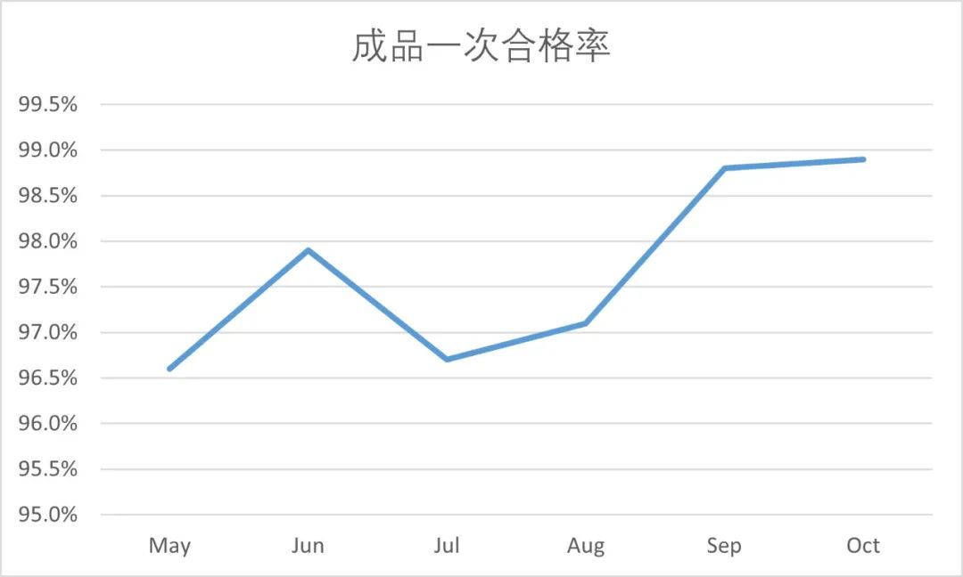 Благодаря реализации этой инициативы по улучшению качественного месяца качественная осведомленность всех сотрудников была значительно повышена, а показатели качества были значительно улучшены. В частности, дефекты, связанные с фактором «человека» в 5M1E, были значительно снижены; Скорости пропущенной установки, неправильной установки и смешанной установки значительно снизились; Потенциальная опасность качества в соответствующих процессах была значительно снижена; и качество эксплуатации процессов было постоянно оптимизировано. В результате доходность первого прохождения и квалификация готового продукта первого прохождения увеличились на 1-2%, в то время как жалобы клиентов и доходность продукта значительно снизились. Эти очевидные улучшения в данных полностью демонстрируют эффективность и ценность инициативы по улучшению.
