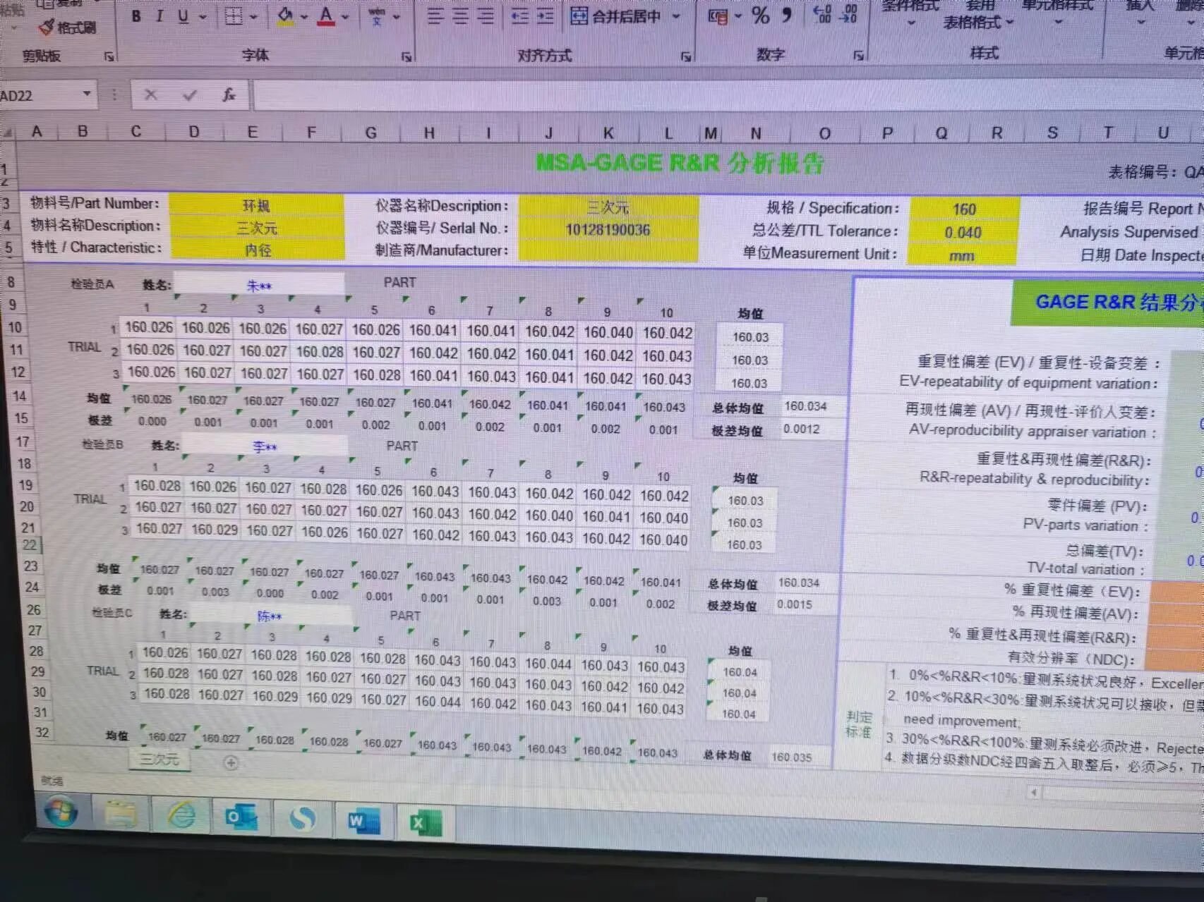 Во-первых, операторы оборудования проводят детальные проверки производительности при запуске оборудования, чтобы убедиться, что оборудование всегда находится в нормальном состоянии. В то же время для высокоточного испытательного оборудования температура и влажность испытательной среды строго контролируются в соответствии с требованиями к рабочей среде оборудования, чтобы обеспечить точность и надежность испытательных данных. Компания придает большое значение развитию талантов и разработала комплексный и эффективный план обучения, позволяющий операторам оборудования быстро овладеть навыками эксплуатации оборудования. В 2023 году Лаборатория метрологии провела 6 специальных тренингов по использованию и технике безопасности испытательного оборудования, обучив 35 операторов магистрального оборудования для компании. Для важного оборудования составлен подробный план анализа R&R GAUGE. В 2023 году анализ GAUGE R&R был проведен на нескольких ключевых испытательных устройствах, и фактическое отклонение было значительно ниже допустимых требований к отклонению оборудования.