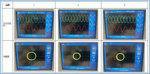 В одинаковых условиях проверяются амплитуда сигнала, размах сигнала и площадь фигуры Лиссажу энкодеров разных марок для количественного сравнения характеристик защиты от помех и разрешения сигнала энкодеров.