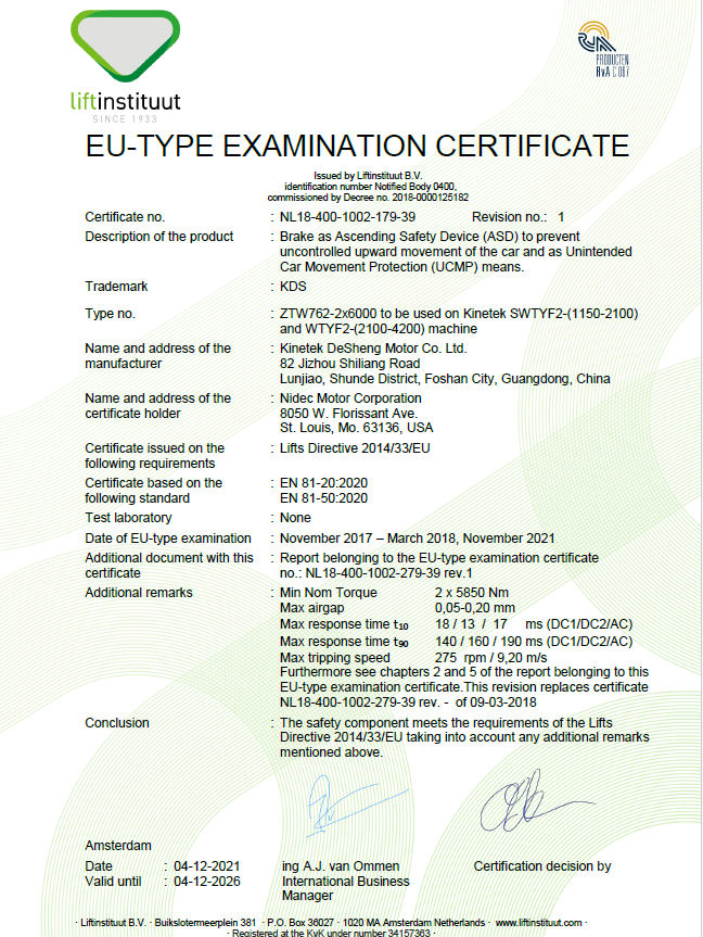 Nidec Elevator Motors имеет полный и всеобъемлющий ассортимент сертификатов продукта, в том числе домашние сертификаты тестирования типа специального оборудования и соответствующие сертификаты иностранных продуктов, которые могут полностью удовлетворить различные рыночные потребности клиентов.